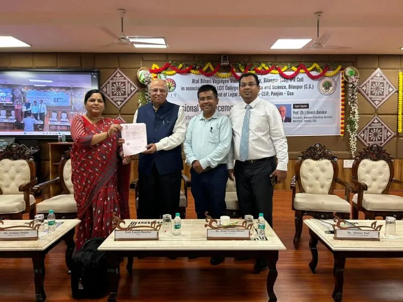 That sounds like a significant collaboration between the Department of Legal Studies at LCIT College of Commerce and Science in Bilaspur, Chhattisgarh, India, and G-CEIP (Global Center for Excellence in Intellectual Property), located in Goa. The Memorandum of Understanding (MOU) signifies an agreement between the two entities to work together on specific initiatives, projects, or goals related to legal studies and intellectual property.